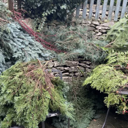 Half a rattan wreath full of foliage