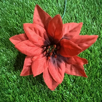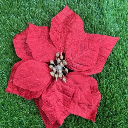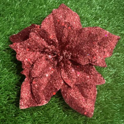 Red glittered poinsettia with clip