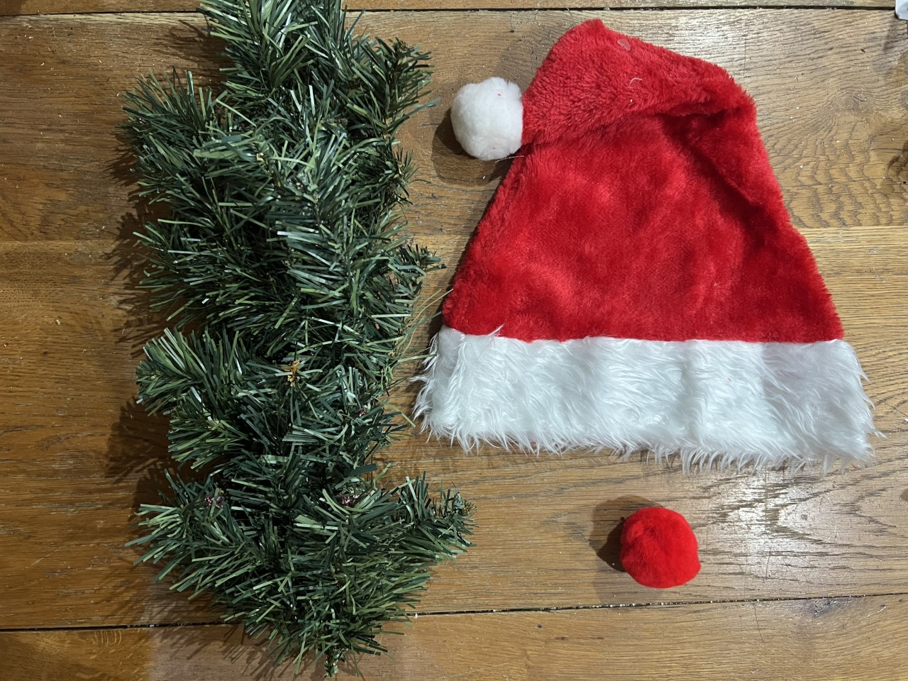 With Gonk Christmas hat, Fluffy Gonk nose 40mm & Artificial pine. Then purchase your extra accessories to decorate his hat.